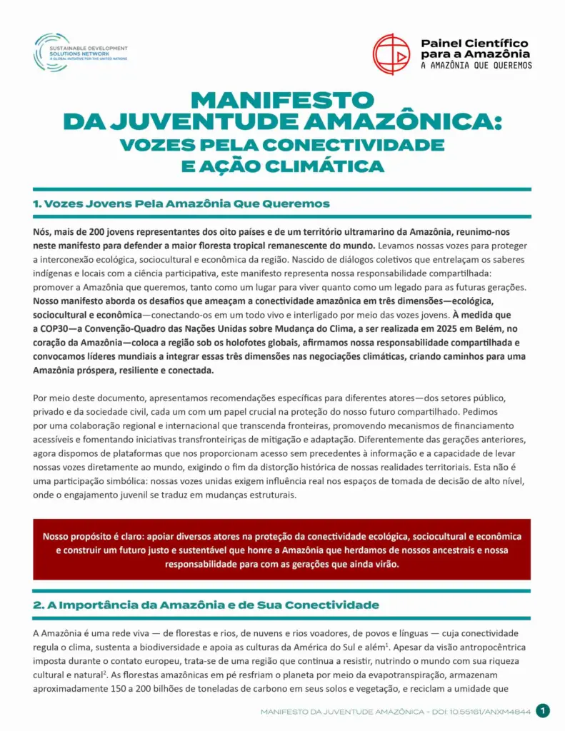 Manifesto Da Juventude Amazônica: Vozes Pela Conectividade E Ação Climática