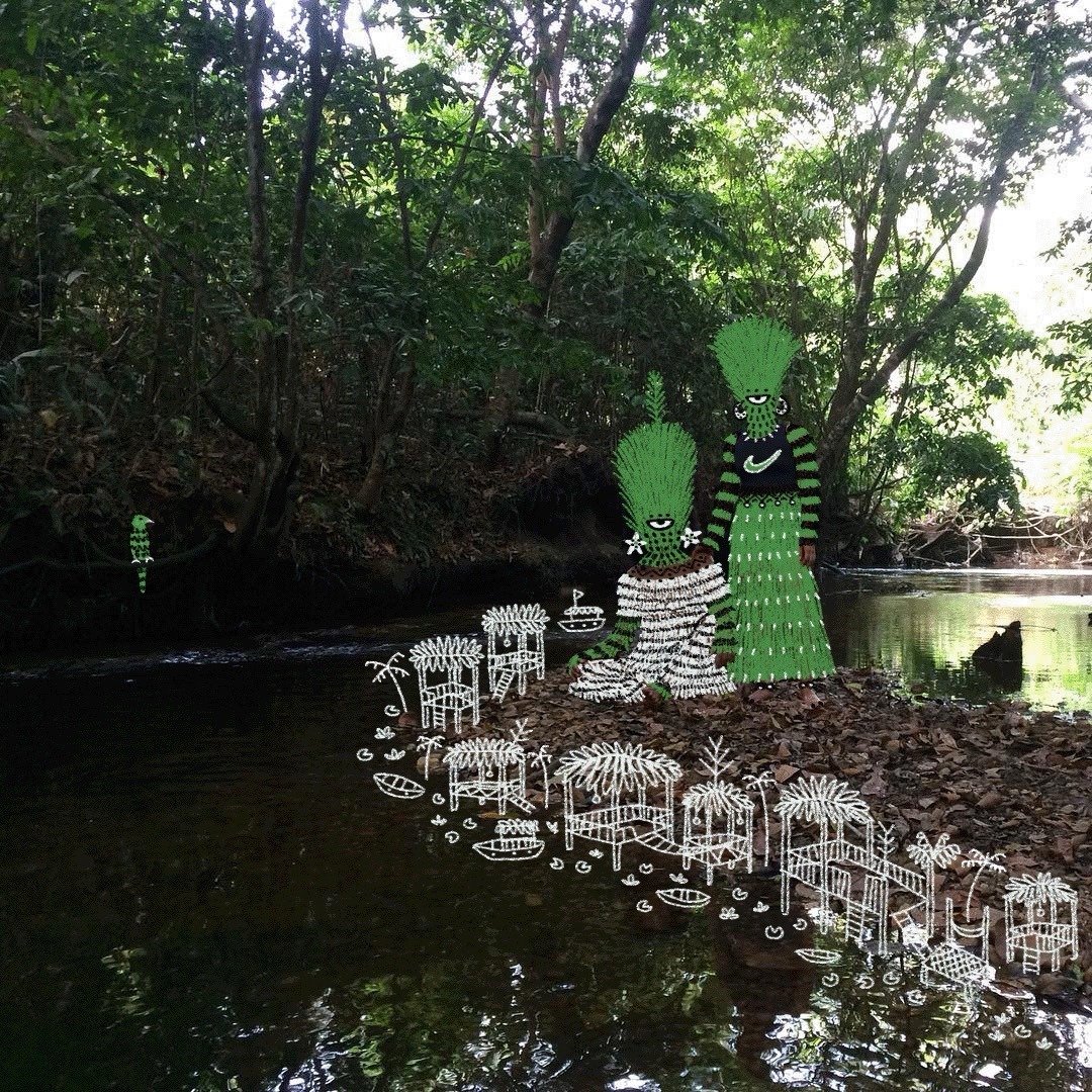 Raised on the banks of rivers and streams in Ourém, in the inland of the state of Pará, “by a family of women who make me much of who I am”, Caio expresses himself through different technologies and artistic languages, from graffiti to lambe-lambe, illustrations, paintings, photographs, videos, animations, tattoos, masks and digital drawings.