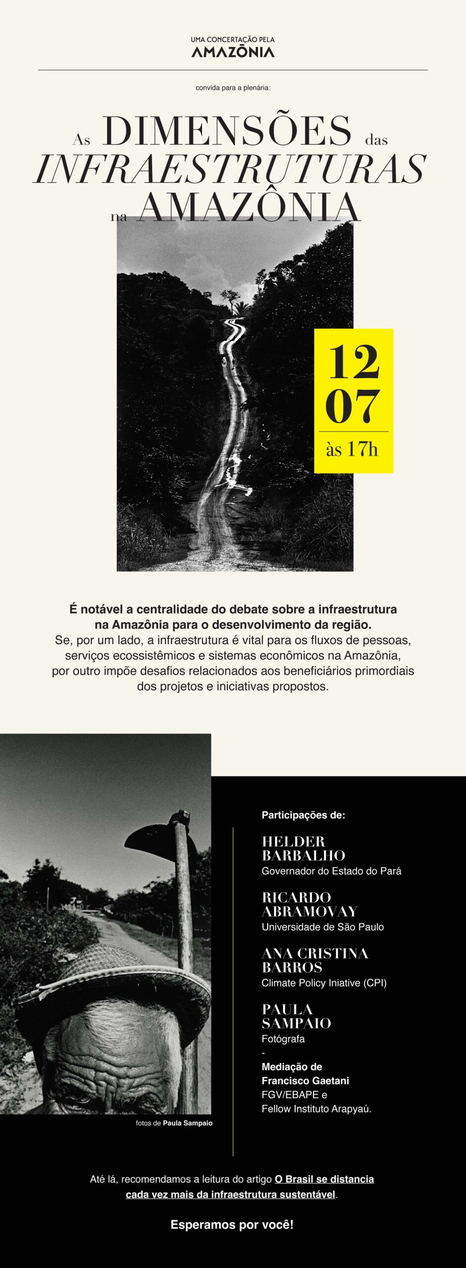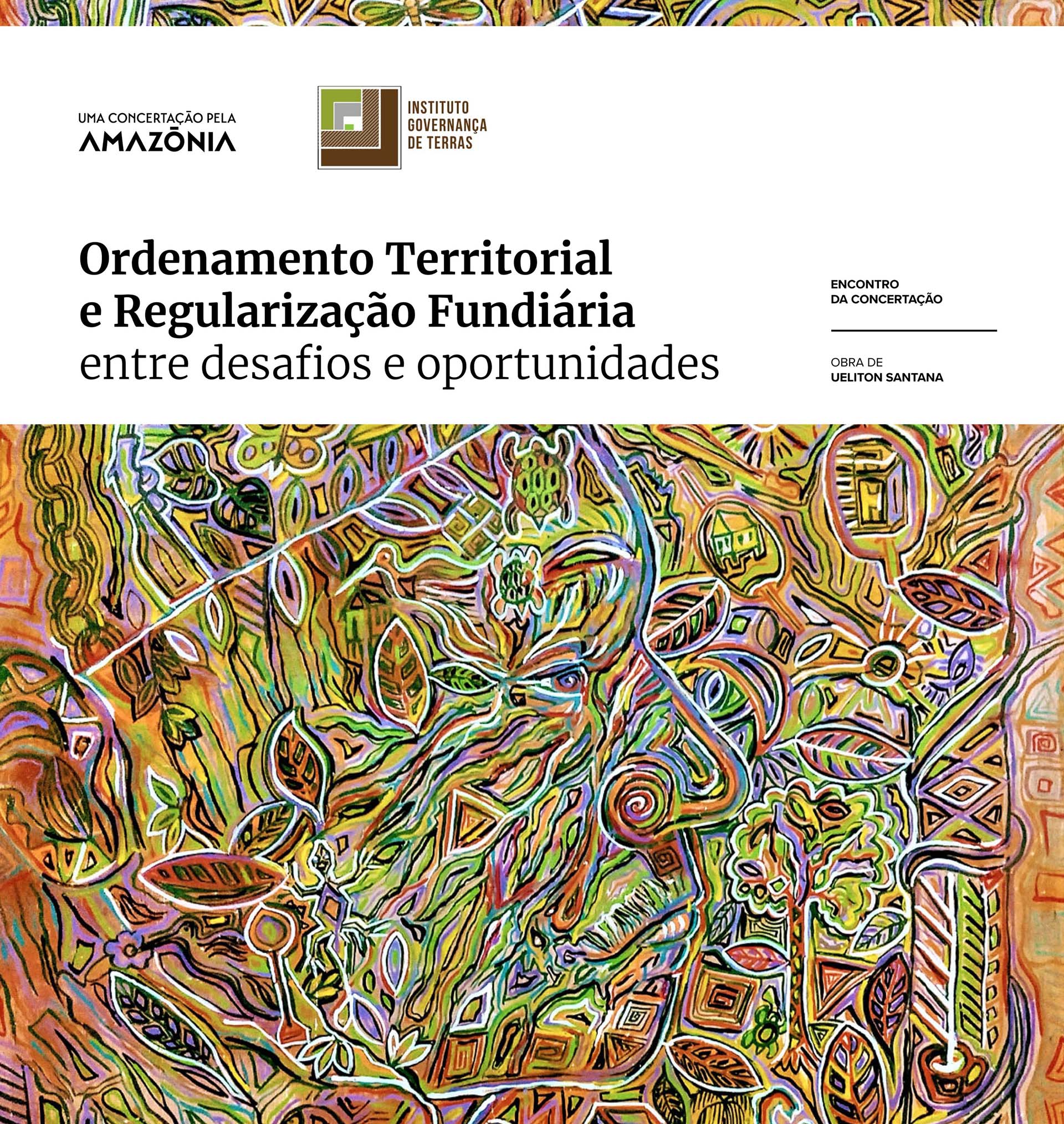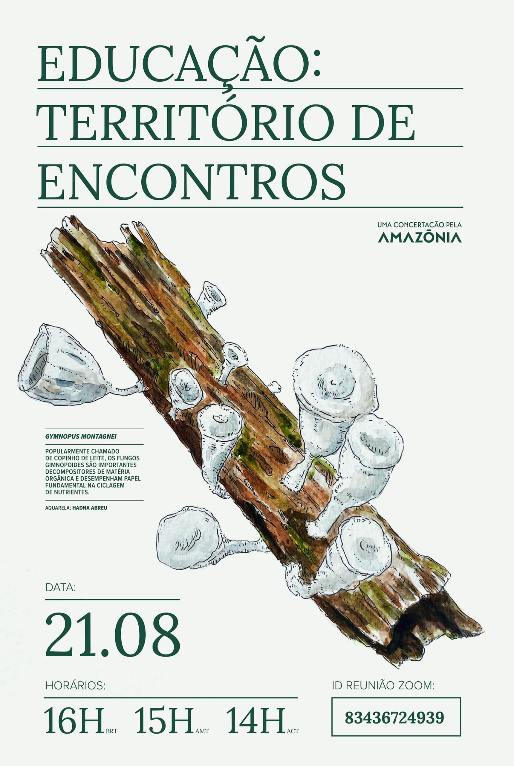 Um caos fundiário iluminado pelas linhas intensas de Uelinton Santana. Linhas delicadas de Hadna Abreu com aquarelas de micélios ressaltam a importância da educação, tema base para tudo e que muitas vezes é invisível como os fungos. Paula Sampaio com apenas duas cores imprime nas retinas consequências e registros de infraestruturas, outro tema central para uma agenda de desenvolvimento das Amazônias. Centrais também são a ciência, tecnologia e inovação na construção abstrata de Adriana Ramalho. Materialidade e imaterialidade aparecem nas colagens ancestrais e híbridas de Laiza Ferreira para compor um diálogo sobre floresta e energia. Energia que é uma grandeza escalar conjugada ao tempo e que também dá vida a manifestações culturais como o Cururu, retratado por Rai Reis.