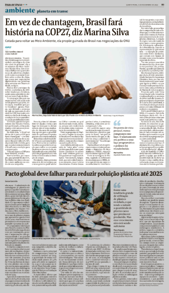 Em vez de chantagem, Brasil fará história na COP27, diz Marina Silva