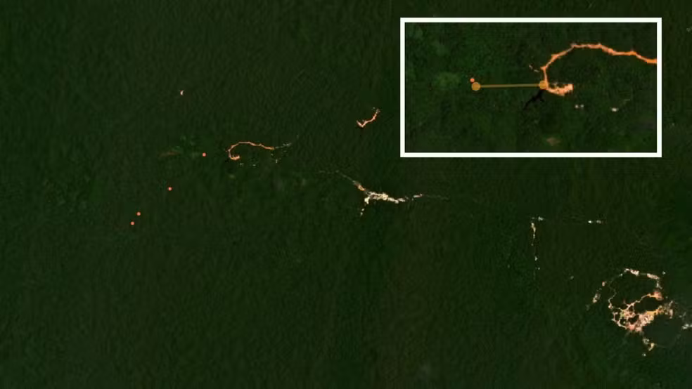 Imagens de satélite mostram garimpo no limite da Reserva de Desenvolvimento Sustentável do Rio Iratapuru. Local abriga santuário de árvores com mais de 80 metros de altura.
