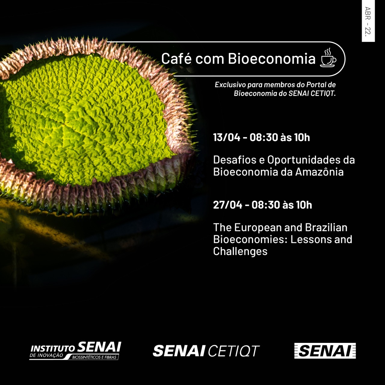 O evento é exclusivo para membros do Portal de Bioeconomia (inscrições gratuitas através do link abaixo).