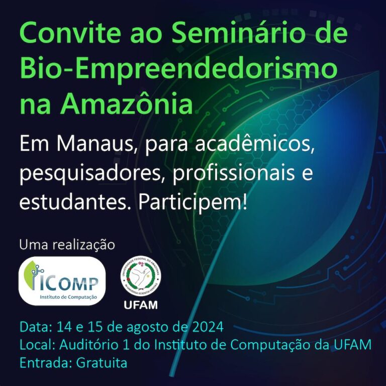 Durante dois dias, empreendedores em diferentes áreas das ciências biológicas estarão em Manaus para contar sobre sua trajetória profissional, seu negócio, e para conversar sobre oportunidades de carreira. O seminário é gratuito e aberto a todos interessados em conhecer mais sobre iniciativas bio-empreendedoras, dentro e fora do país.