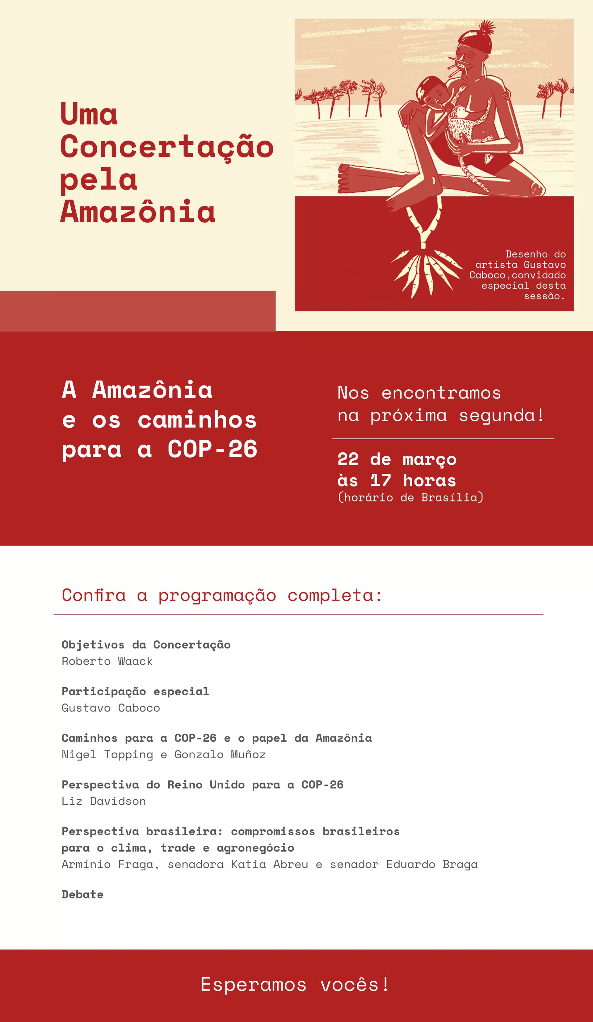 O clima conecta as Amazônias à Panamazônia, ao Brasil e ao mundo. Três COPs se passaram e a qualificação desse debate foi enriquecida pelo resgate da identidade indígena proposta por Gustavo Caboco que, entre pés e raízes, ressalta a conexão das pessoas com seus territórios, mesmo quando não estão mais neles; pelos seres encantados de Bonikta que em finas linhas formam uma camada a mais de sensibilidade nos rios; e pela biodiversidade digital de Chermie, que ilustra por meio grafite contemporâneo a atemporalidade da natureza . Entre o céu e a terra, há a força do cinema para o firmamento não cair.