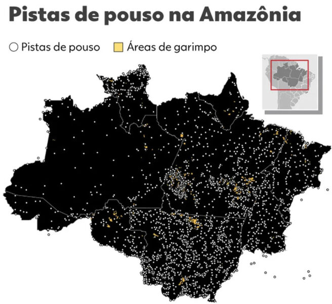 Ao todo, existem 804 pistas de pouso irregulares na Amazônia e mais da metade delas está próxima de regiões de garimpo.